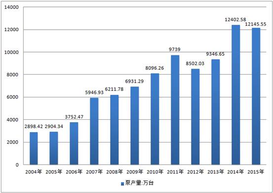 2004-2015年中國泵行業產量情況