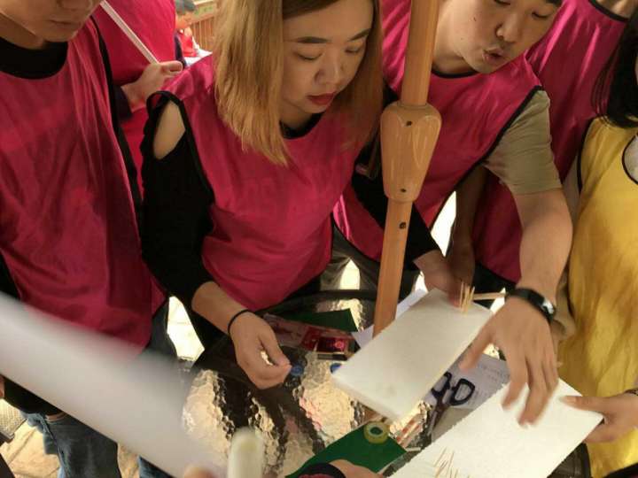 接下來的合力造橋項目,要求兩隊只能運用僅有的一點造橋材料,造出承重結構相同、橋高相等的半個橋體。河面很寬兩隊隊員喊話及做手勢均無法取得溝通,只能利用雙方領隊的衛星電話,但受大氣層影響,每隔十分鐘才能成功通話一次,且每次只有短短的一分鐘。為了完成共同的任務,隊員們立刻開始了精心的設計與施工。盡管教練為項目設置了種種障礙,但隊員們毫不畏懼,紛紛獻計獻策,突破固有的思維方式,盡自己大的努力去完成目標。其實遇到困難不可怕,可怕的是不敢去面對困難,只要我們不放棄,敢于突破自己,改變思維方式,相信只有想不到,沒有做不到,終將實現偉大目標。
