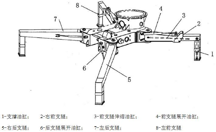 小型泵車后擺伸縮型支腿的支撐結構簡圖