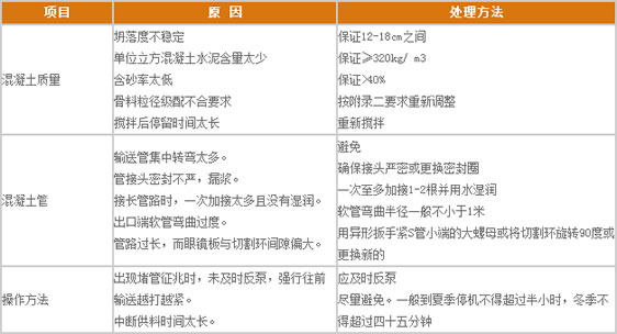 由于混凝土質量差或輸送管布置不合理,均會造成堵塞,但都可以通過操作人員的控制得以避免。