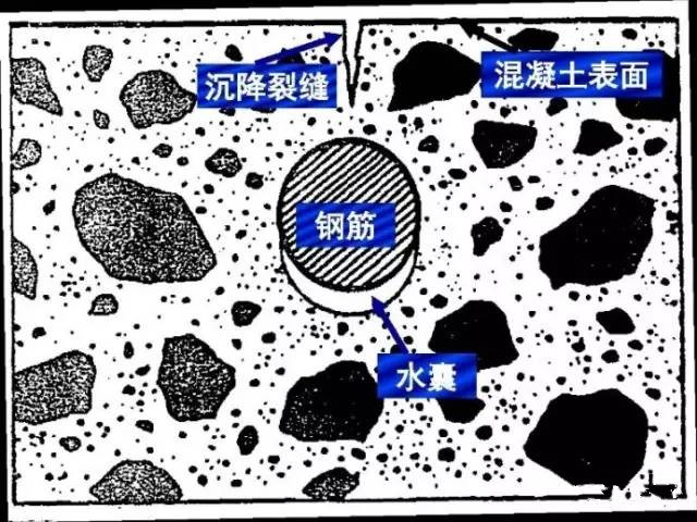 在混凝土粗骨料、鋼筋周圍形成水囊,隨著水分的逐漸揮發形成空隙,從而影響混凝土的致密性、骨料的界面強度以及混凝土與鋼筋間的握裹力,導致混凝土整體強度的降低?;炷撩谒斐伤苄允湛s是一個不可逆的變形。泌水引起混凝土的沉降導致混凝土產生塑性裂紋,從而會降低水泥混凝土的強度。特別是泌水混凝土產生整體沉降,澆注深度大時靠近頂部的拌合物運動距離更長,沉降受到阻礙,如遇到鋼筋等障礙時,則產生塑性沉降裂紋,從表面向下直至鋼筋的上方。