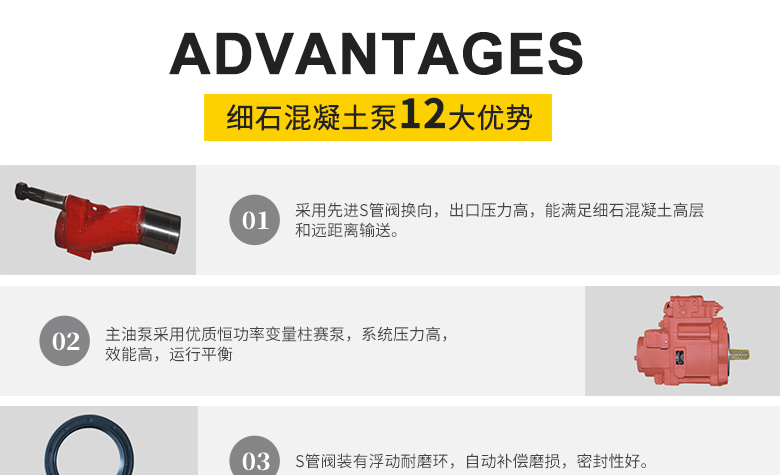 簡介:細石混凝土泵-HBT20-8-30的主油泵采用優質恒功率變量柱賽泵,系統壓力高,效能高,運行平衡。