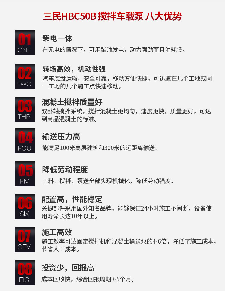 以下是三民HBC50B攪拌車載泵的八大優勢: