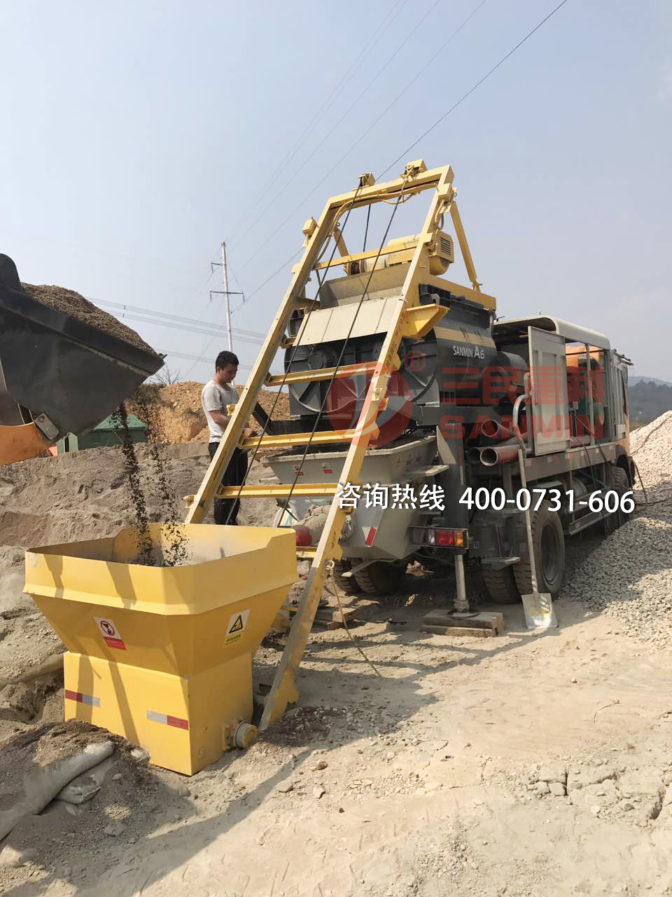 一、混凝土攪拌拖泵具有高吸料性,這在于它的料斗設計形狀和輸送缸的直徑以及主油泵的性能