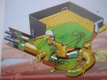 我的核心就是泵送機構了,它由兩只主油缸、水箱、換向裝置、兩只混凝土缸、兩只混凝土活塞、料斗、分配閥(又稱S管)、擺臂、兩只擺動油缸和出料口組成。