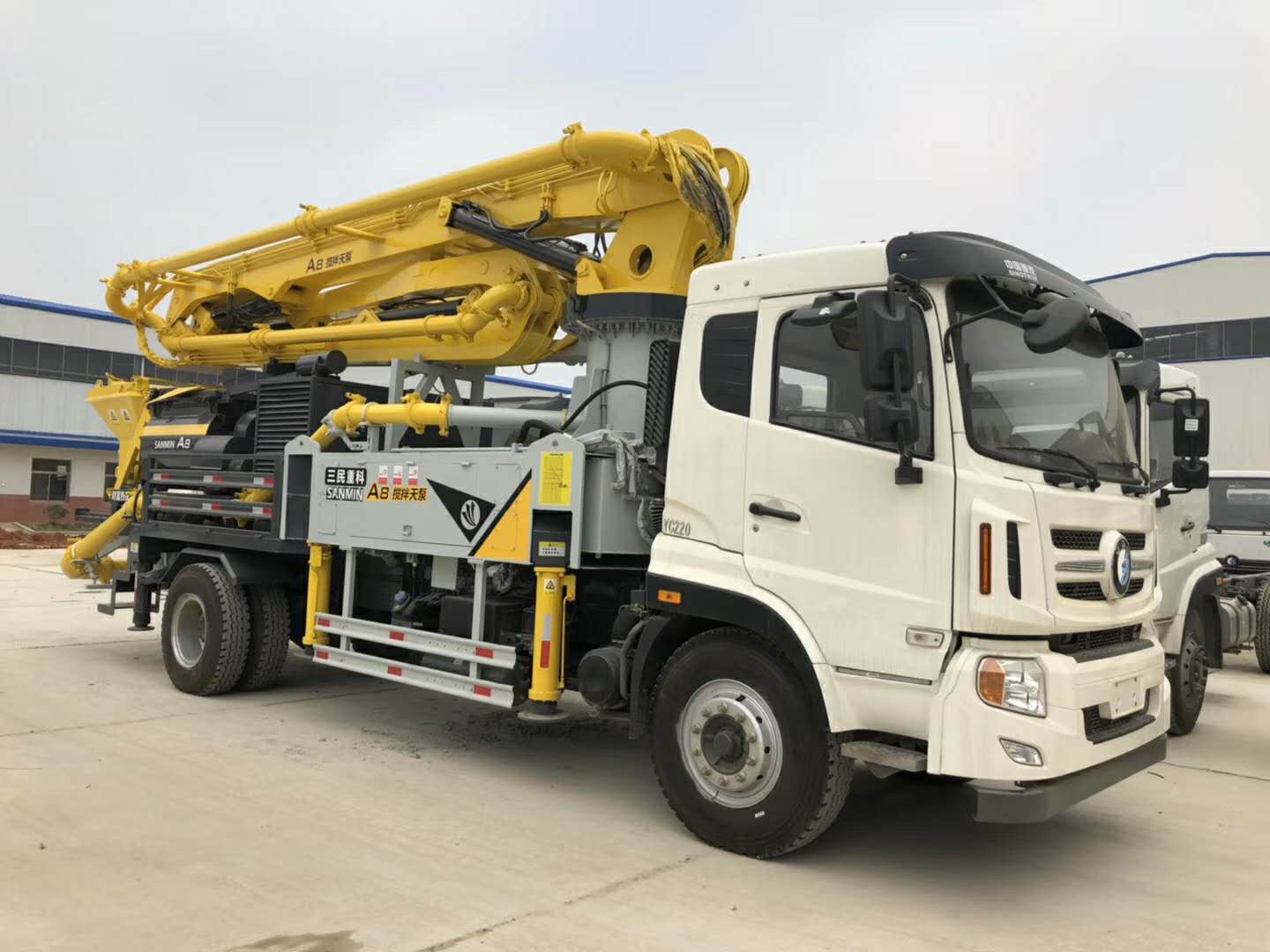 5、外界因素帶來的沖擊,例如風。而所有這些力,最后都要有一個反作用力給它化解掉。如果輪胎挨著地面,那么就要分到支腿和輪胎,以及輪胎和底盤的連接機構上去化解。假設輪胎是懸空的,那么這所有的力,都會傳輸到泵車的底盤上面,再通過支腿去化解。